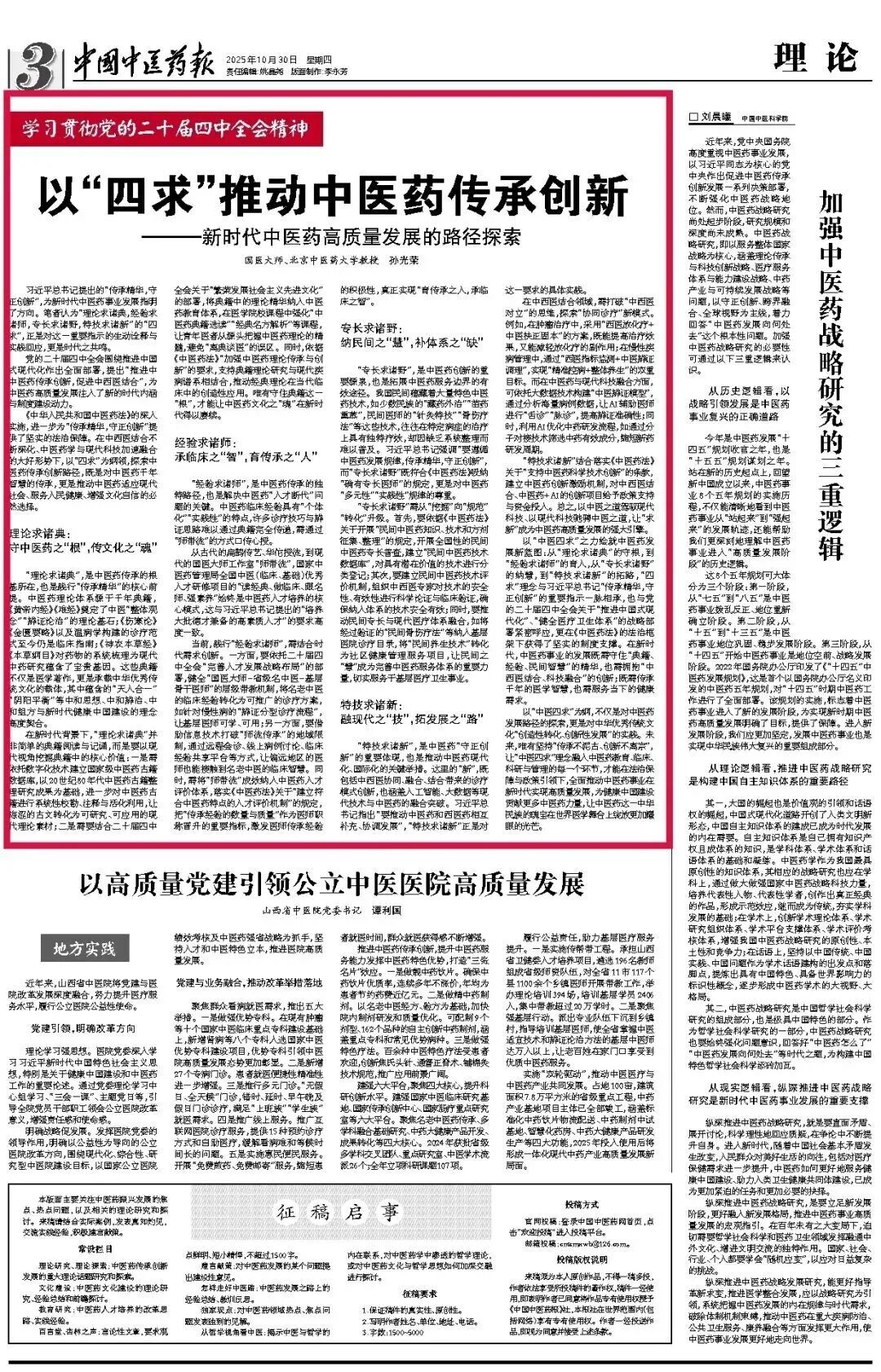 近日,国医大师,我校顾问、终身教授,中医学院名誉院长孙光荣的文章《以“四求”推动中医药传承创新——新时代中医药高质量发展的路径探索》,被新华社、《中国中医药...