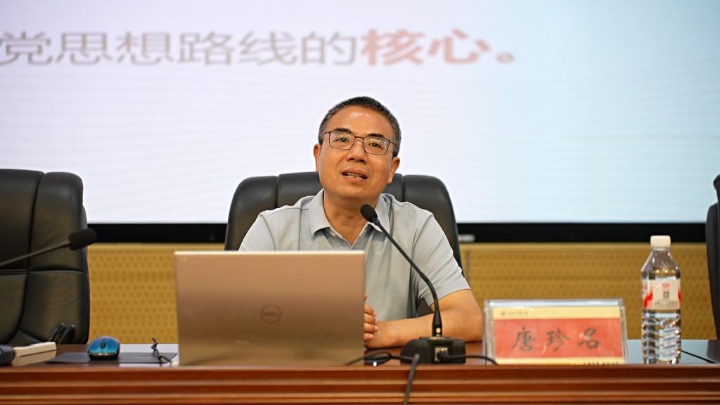 唐珍名以《习近平对实事求是思想路线的原创性贡献》为题作开场专题培训,他结合时事重点讲授了“岳麓书院是党的实事求是思想路线的重要策源地”这一重要论述的史实依据和精神价值,深入分析了“实事求是”在湖湘大地最终形成的文化线索与思想脉络,着重强调了坚持和发展实事求是思想路线是推进新时代中国特色社会主义建设和实现马克思主义中国化的正确方向和根本途径。