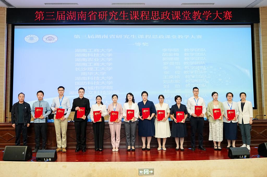 9月20日,由湖南省教育厅主办、我校承办的第三届湖南省研究生课程思政课堂教学大赛在济世楼学术报告厅圆满完成,湖南省教育厅学位管理与研究生教育处副处长刘梦清、副校长张玉芬等领导出席颁奖典礼。