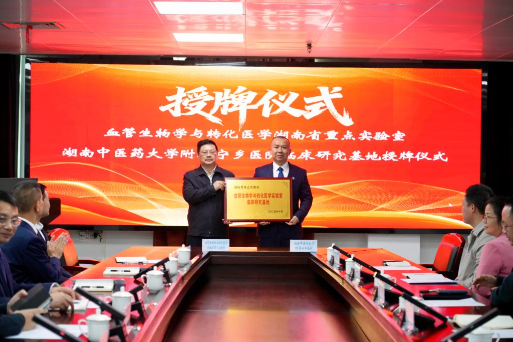 在宁乡市人民医院,戴爱国一行出席“血管生物学与转化医学湖南省重点实验室—湖南中医药大学附属宁乡医院临床研究基地”授牌仪式。该基地的落地,是我校与宁乡市人民医院深化合作的重要举措,将有力推动血管生物学与转化医学的临床研究与成果转化,为提升区域医疗服务水平注入新动力。