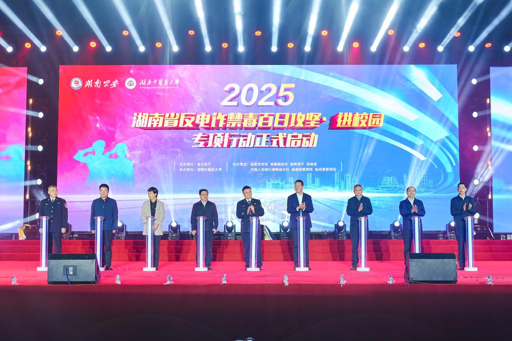 随后,与会领导及嘉宾共同启动2025年湖南省反电诈禁毒百日攻坚·进校园专项行动。