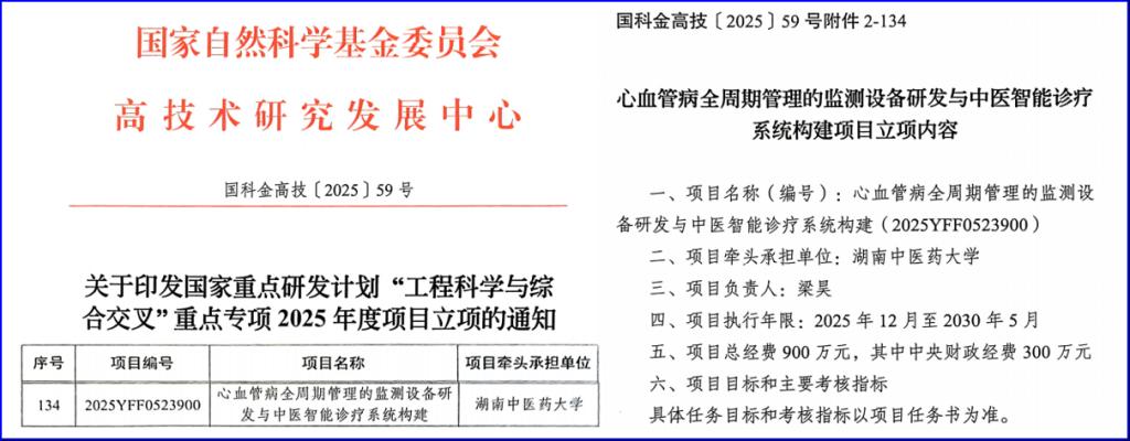 近日,国家重点研发计划“工程科学与综合交叉”重点专项立项名单正式公布,我校中医药科学院副院长、副教授梁昊牵头申报的“心血管病全周期管理的监测设备研发与中医智...