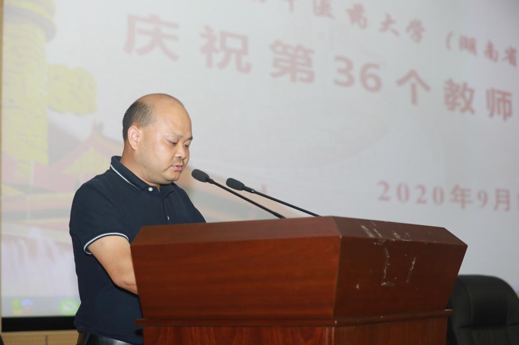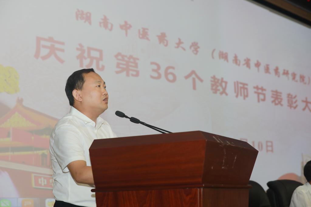 校(院)党委书记秦裕辉向全校教职工致以节日的问候和崇高的敬意,向受表彰的老师们表示热烈祝贺。秦裕辉就如何做新时代立德树人的“好老师”提出三点要求:一要坚定理想信念,把牢政治方向第一根本;二要坚持回归本分,抓好教书育人第一责任;三要注重修德立身,夯实道德品质第一标准。他希望全体教职工以受表彰的同志为榜样,团结一心、砥砺奋进,全面落实立德树人根本任务,着力构建“三全育人”新格局,守教育报国初心、担筑梦育人使命,传承精华、守正创新,以优异的成绩迎接学校本科教育六十周年和校(院)第四次党代会胜利召开。