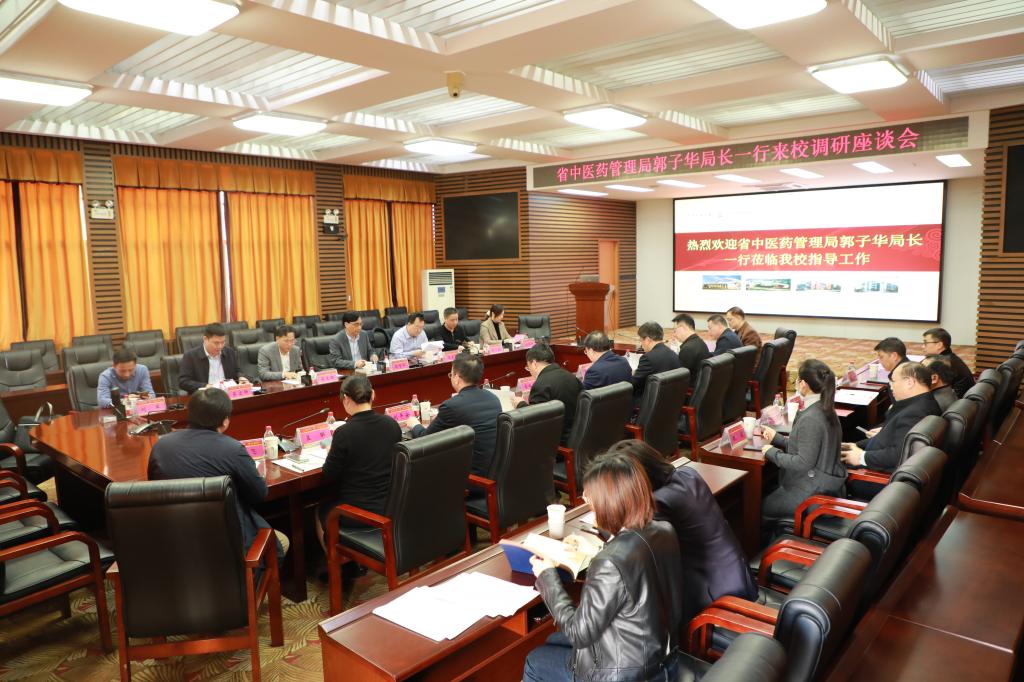 3月24日下午,湖南省中医药管理局局长郭子华一行来校调研,双方在行政楼一楼会议厅召开座谈会。省中医药管理局副局长倪友新、肖文明,我校(院)党委书记秦裕辉、校(院)长戴爱国,副校长彭清华、副校(院)长刘平安、副校长刘红华参加会议。