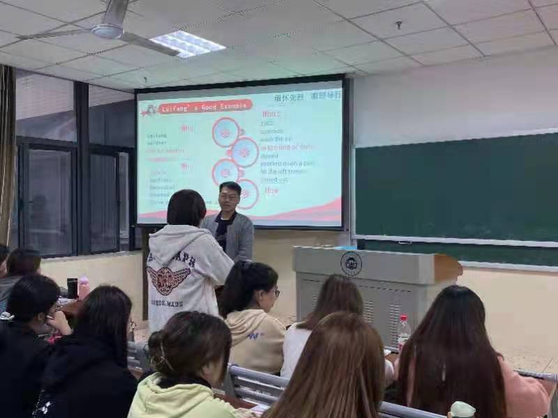 《创业基础》课堂上,胡正东老师深情缅怀了建党以来牺牲的“创业先驱”,号召同学们“承先辈之遗志,尚拼搏之精神,穷集体之智慧,谋复兴之大业,做新时代奋斗人”;《社会调查与分析》课上,吴琼老师以刘少奇天华大队调研为例,教导学生们在开展社会调查时一定要学习刘少奇同志求真务实、艰苦朴素、关心人民的精神;《应用英语》课上,伍希源老师用英文简要介绍了雷锋同志的生平事迹,希望同学们能以雷锋为榜样,弘扬雷锋精神……党员教师们深入挖掘各门课程蕴含的思政元素,与弘扬先烈精神巧妙结合,在传授知识的同时实现了价值引领,有效提升了课程思政育人成效。