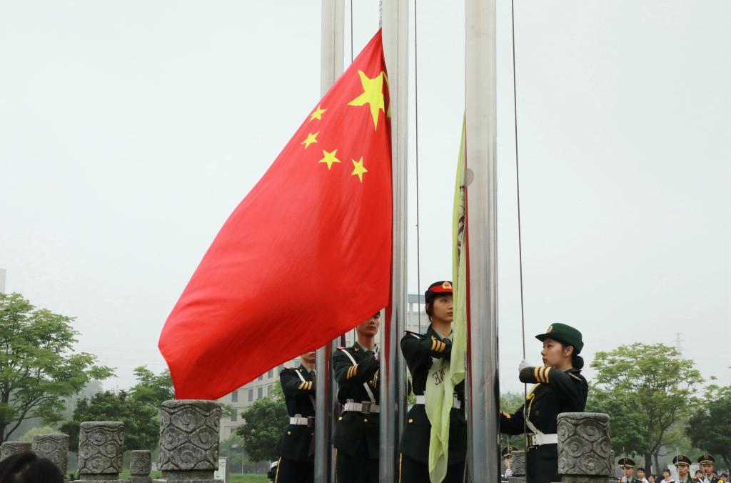 全体师生庄重地齐唱国歌并目视五星红旗冉冉升起,表达自己对祖国无限的敬意。活动还举行了唱校歌升校旗仪式。
