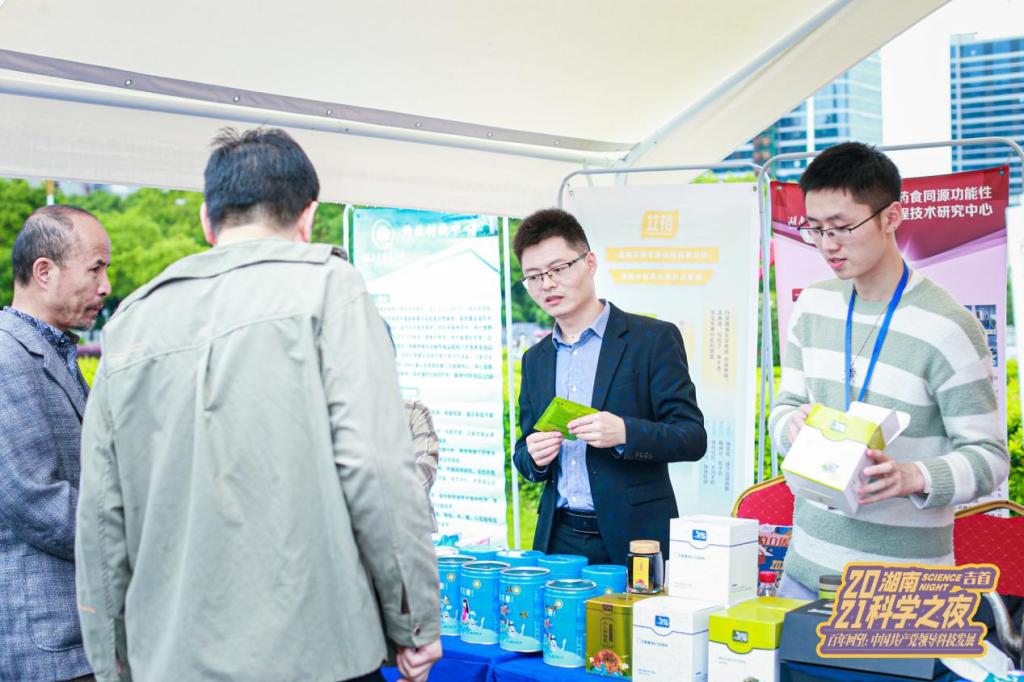 22日晚,“湖南科学之夜”在吉首市人民政府的前坪广场上拉开帷幕。该活动将科普创新和科普互动相结合,采取红色主题展、科学集市、科学展演等多种形式以充分展示我省的科技成果与成就。由我校主持研发的具有增强免疫、调和气血等功能的草本足浴、沐浴包,结合现代亚微米技术的富氢水素杯,生物与中医药结合开发的固体营养饮料,具有利咽润肺功效的压片糖果、强身增食的中药汤包和中药膏滋等分别在活动中展出。从内服到外用,由膳食到饮品,功效多样、剂型多种、药食同源的大健康产品吸引了不少前来观展的当地群众和游客,大家纷纷赞许中医药的疗效与魅力。