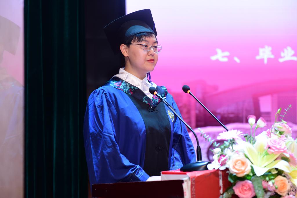 毕业生代表袁榛表示在建党百年之际,作为一名中医药学子,会更加坚定对中医药事业的信心信念,昂首阔步迎接人生的下一篇章。