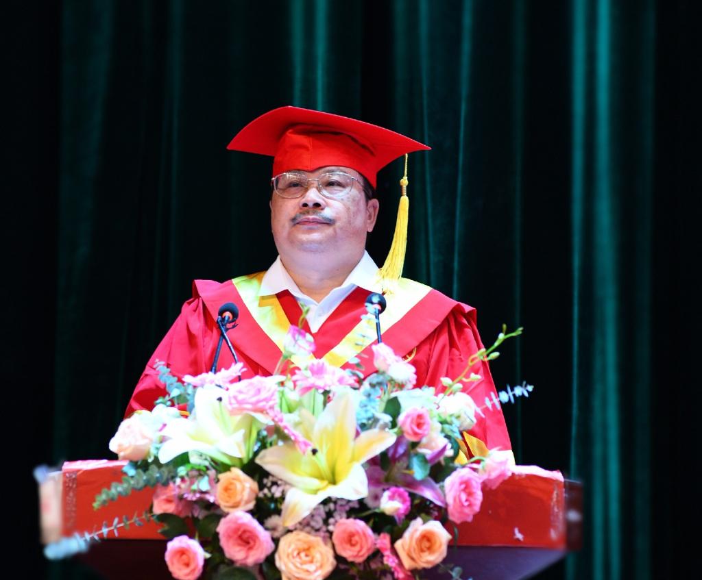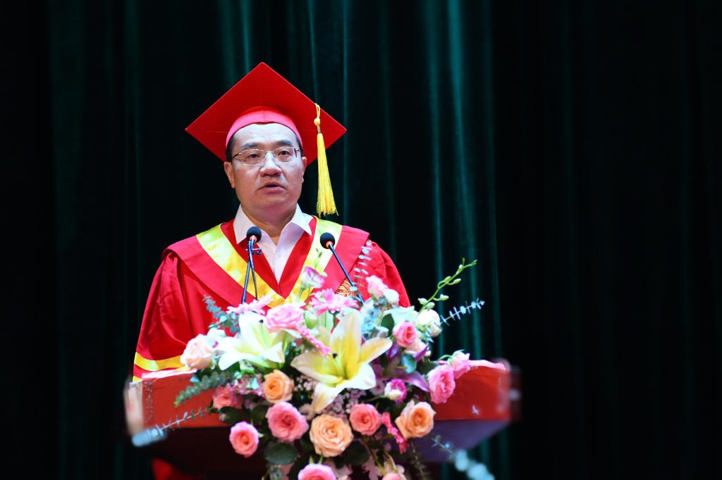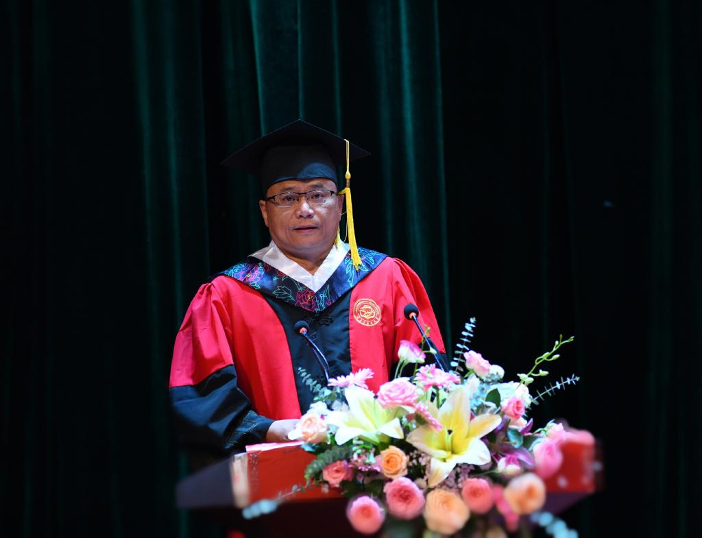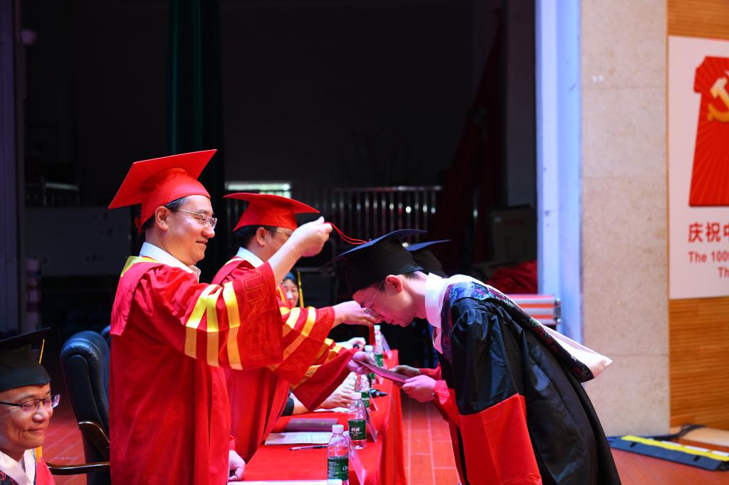 校(院)长戴爱国宣读了《关于准予2021届研究生毕业和授予学位的决定》,并为全体硕博士毕业生颁发毕业证书,行拨穗礼。