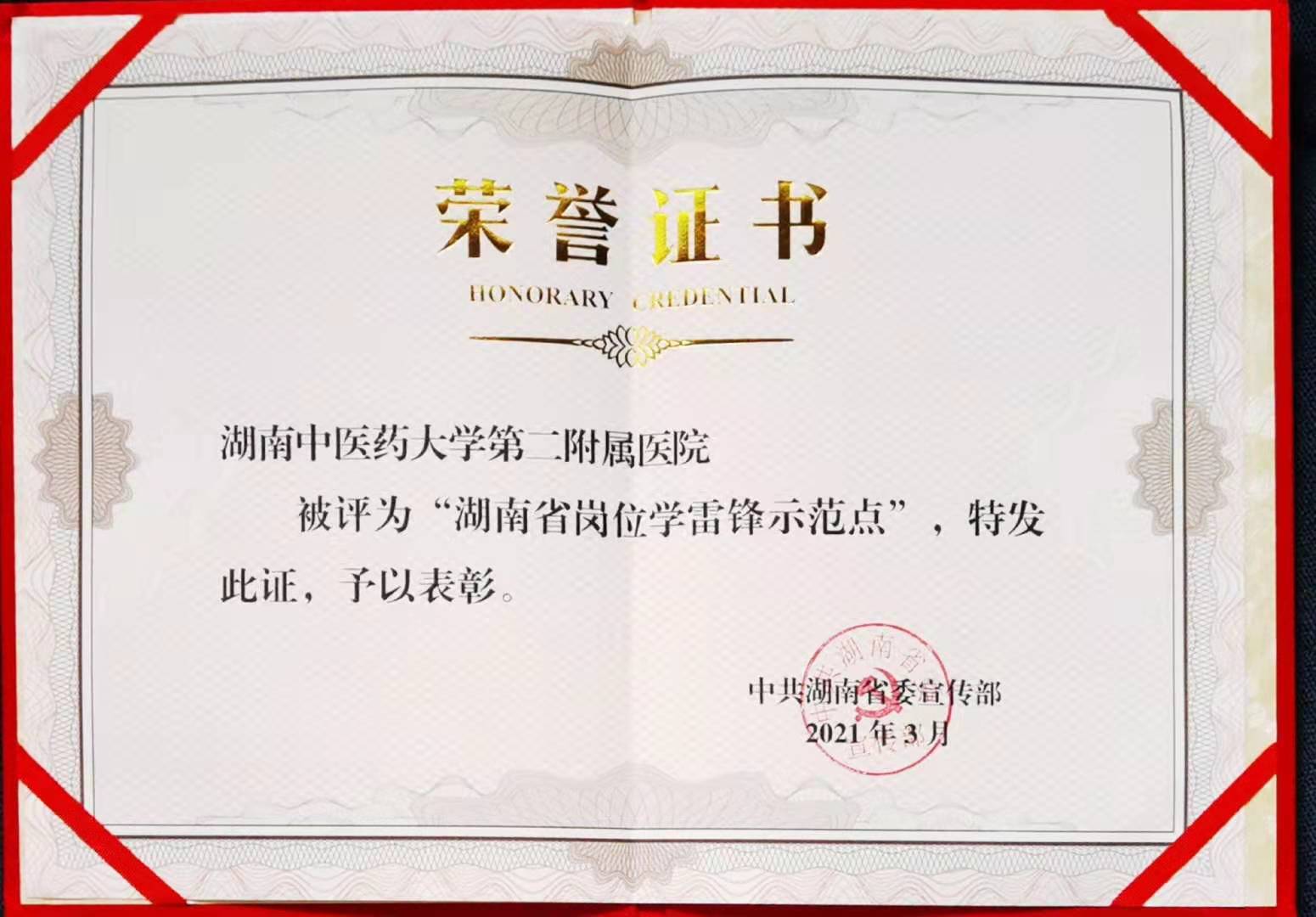 近日,湖南省委宣传部印发《关于命名首批湖南省学雷锋活动示范点和岗位学雷锋标兵的决定》,经医院申报、组织推荐、专家评议、研究审议,附二院获评湖南省首批学雷锋活动示范点,是省内唯一获此殊荣的中医医院。