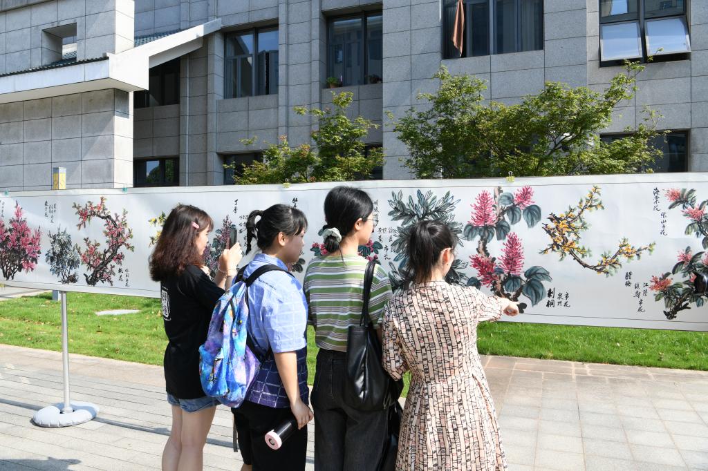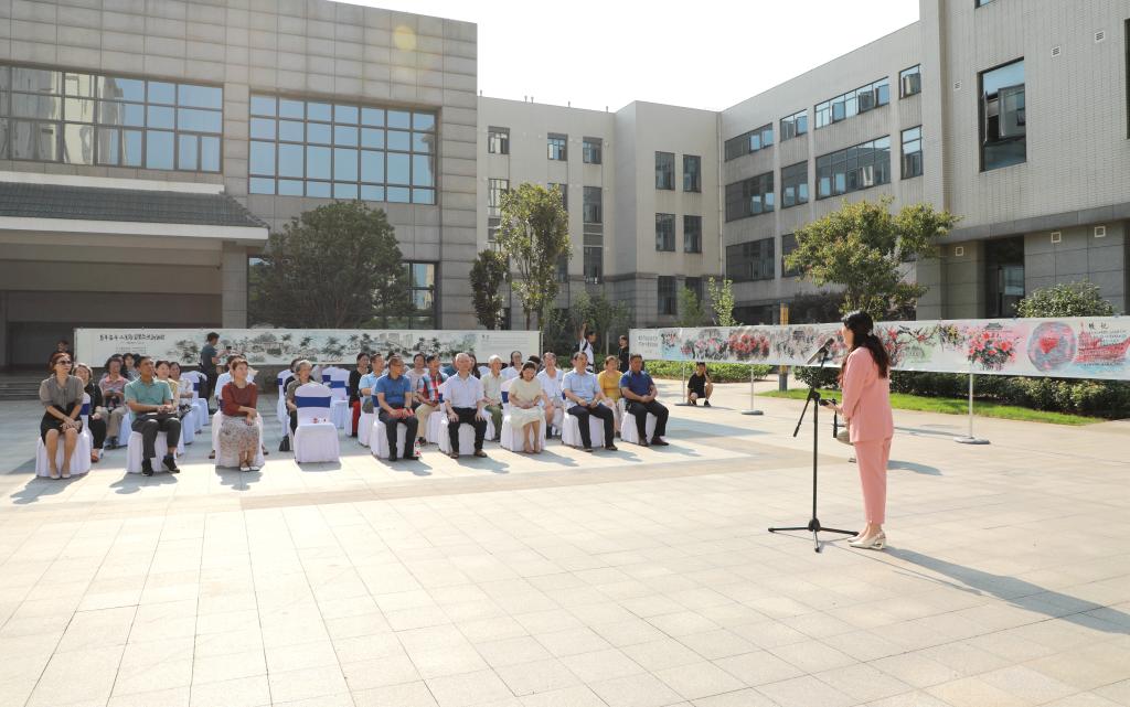 6月23日,由校(院)党史学习教育领导小组主办的“百米丹青贺百年大党”书画展在第三教学楼南侧广场举行。校(院)党委副书记易刚强,校(院)党委委员焦珞珈,书画作者、我校退休干部王弗环及其家属,党政办、宣传统战部、离退休处、机关党委、学生工作部、保卫处相关职能部门负责人,离退休职工及学生代表等参加活动。开幕式由焦珞珈主持。