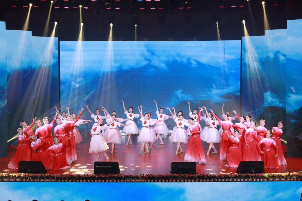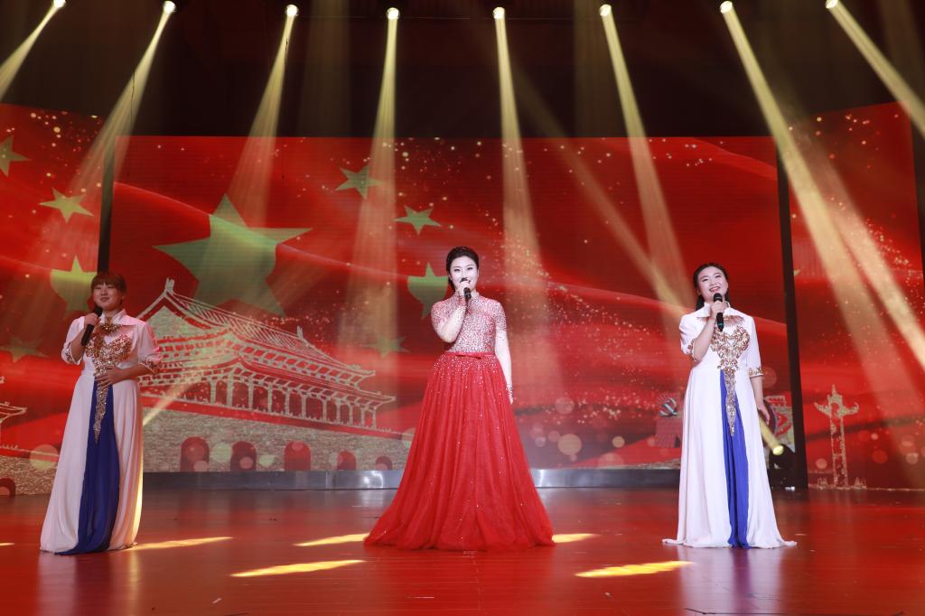 党旗飘扬,歌声铿锵。活动最后,全场观众自发起立,挥舞手中的红旗,在集体合唱中抒发了对党和国家的无限热爱。