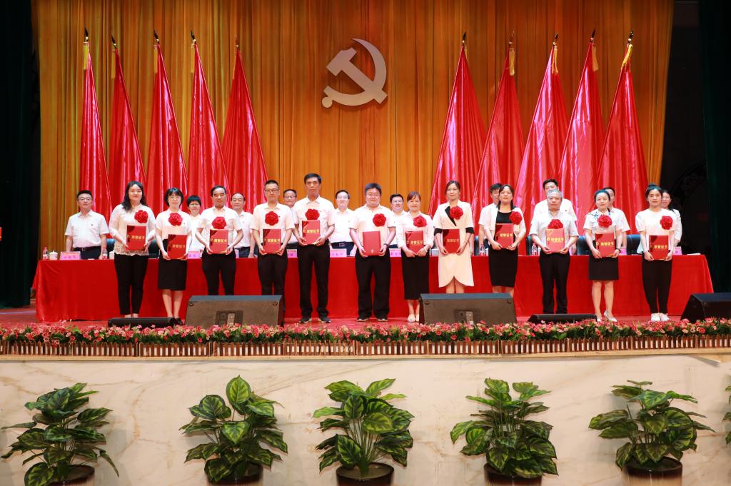 易刚强宣读《关于全省及省直行业系统“两优一先”评选表彰结果的通报》和《关于表彰优秀共产党员、优秀党务工作者和先进基层党组织的决定》。3名优秀党务工作者、2名优秀共产党员、2个先进基层党组织、3名优秀大学生党员受到全省及省直行业系统表彰;143名优秀教职工共产党员、120名优秀学生共产党员、38名优秀党务工作者及37个先进基层党组织受到校(院)党委表彰。与会校(院)领导为受表彰的单位和个人代表颁奖。