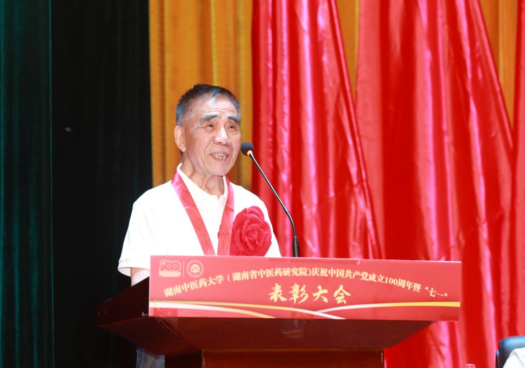 省教育系统优秀党务工作者、医学院第一职工党支部副书记唐群同志,校(院)优秀共产党员代表、马克思主义学院教师李文术同志,校(院)优秀党务工作者代表、研究院团委书记、研究院附属医院人事科科长熊宇杰同志,校(院)优秀共产党员学生代表、针灸推拿与康复学院2020级博士冯祥同志作为受表彰代表分别发言。