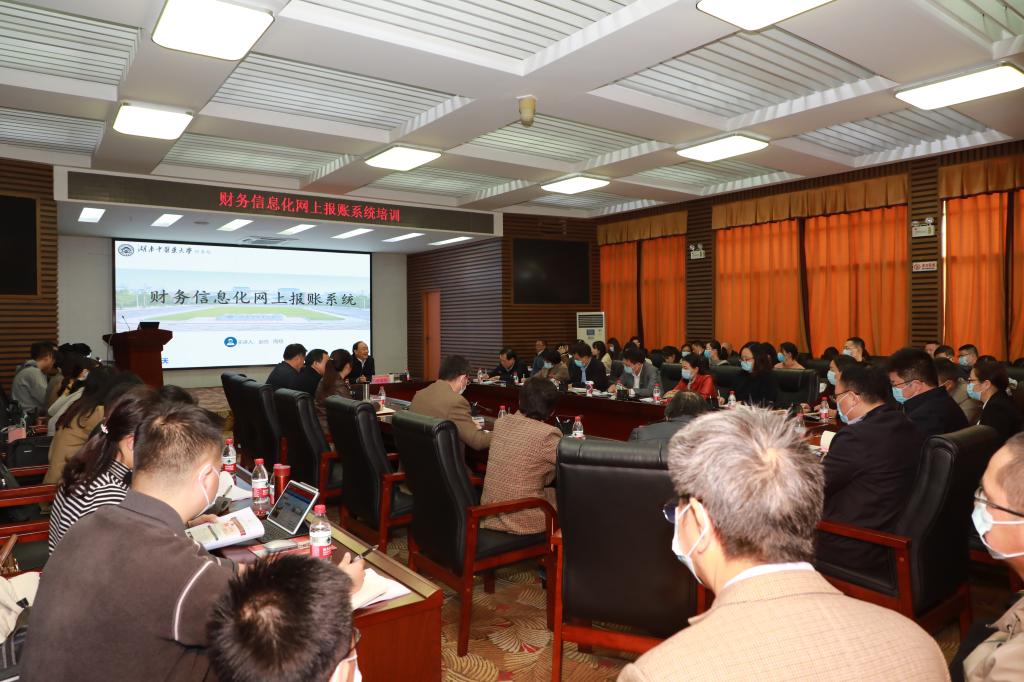 11月19日下午,财务处在行政楼一楼会议室组织召开财务信息化网上报账系统培训会。副校长刘鸿翔,各部门财务负责人,财务专干参加会议,会议由财务处处长戴德权主持。