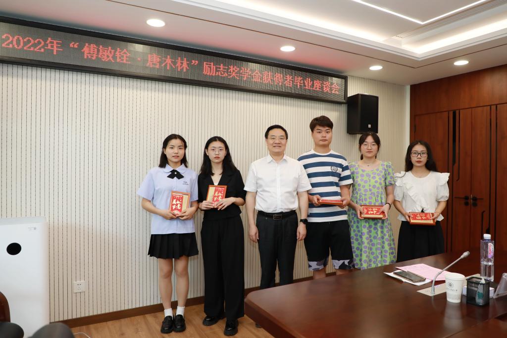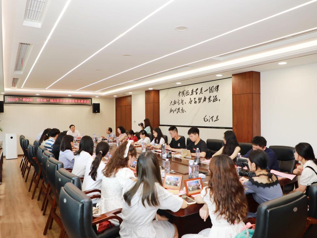 ”6月8日上午,19位获得“傅敏铨·唐木林”励志奖学金的优秀应届毕业生齐聚行政楼二楼会议室,分享心得,展望未来。党委书记秦裕辉、副校长廖菁,党委宣传部、学生工作部(处)相关负责人等参加座谈会。座谈会由廖菁主持。