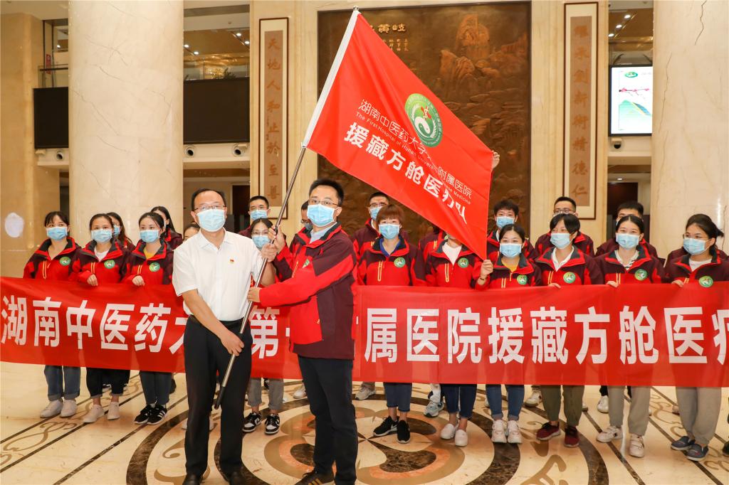 医院党委书记程博勉励队员们,要一切行动听指挥、一心一意为病人、一帆风顺保健康,发扬缺氧不缺精神、艰苦不怕吃苦、海拔高境界更高的精神,扛牢责任,打赢胜仗,展现出湖南中医附一人的责任担当,发挥出中医药的优良疗效,服务西藏人民,期待大家胜利凯旋!