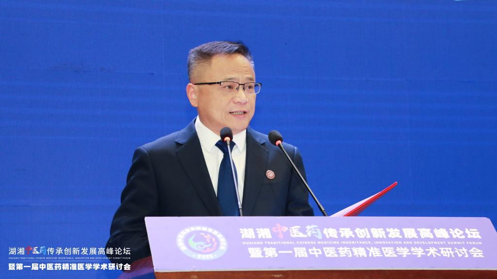 曾立新代表省科技厅对会议的召开表示热烈祝贺。他指出,本次会议是贯彻落实党的二十大精神和省委、省政府部署、促进中医药传承创新发展的实际行动,希望与会单位勇担重任、不负使命,齐心协力推进我国中医药传承创新发展。他表示,省科技厅将以更加有力的措施,加快推动中医药教育、科技、人才融合发展,共同开创湖南中医药传承创新发展的新局面。
