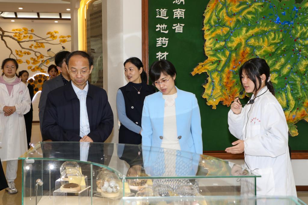 叶妙一行实地考察了校史馆、中药标本陈列馆、湖南省中药种质库、青年研习荟、杏林青年之家等地,详细了解“湖湘·杏林青年马克思主义者培养工程”、大学生社会实践、大学生创新创业等工作开展情况,并为青年研习荟和“湖湘·杏林青年马克思主义者培养工程”教学基地进行了揭牌。