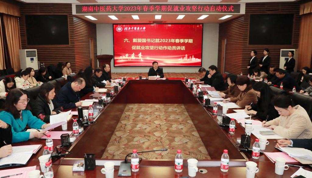 3月21日上午,我校2023年春季学期促就业攻坚行动启动仪式在行政楼一楼会议厅举行。党委书记戴爱国,校长易刚强,副校长廖菁及相关职能部门负责人、各学院党委书记、分管学生工作院领导、学生科长、全体2023届毕业生辅导员、2022年就业工作先进个人及招生就业处全体工作人员参会。会议由易刚强主持。