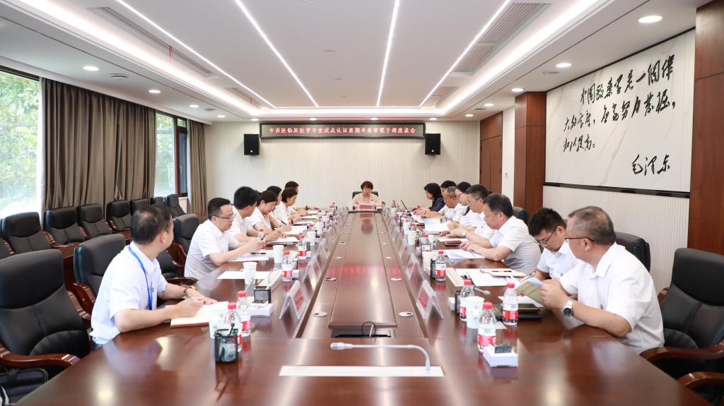 上午,我校中西医临床医学专业试点认证工作见面会在含浦校区一办公楼一楼会议厅举行。校党委书记戴爱国,校长易刚强,副校长曾福生,校党委委员、副校长熊辉,校党委委员、副校长廖菁,校党委委员、组织人事部部长焦珞珈,学校相关职能部门负责人,中西医结合学院班子成员,附属医院负责人、教师代表、学生代表参会。校长易刚强主持会议。