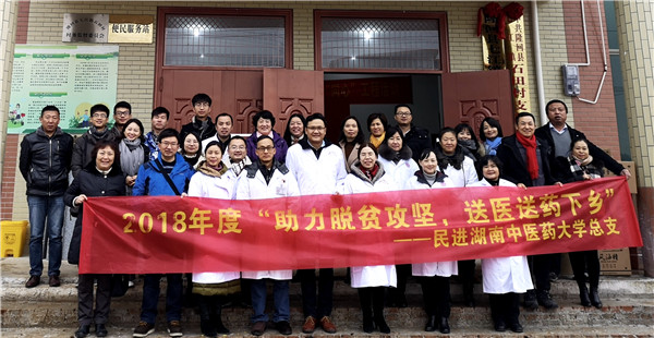 12月8日,民进湖南中医药大学总支组织大学、第一附属医院、第二附属医院和研究院支部会员前往邵阳市隆回县七江镇石田村,开展“助力脱贫攻坚,送医送药下乡”活动。