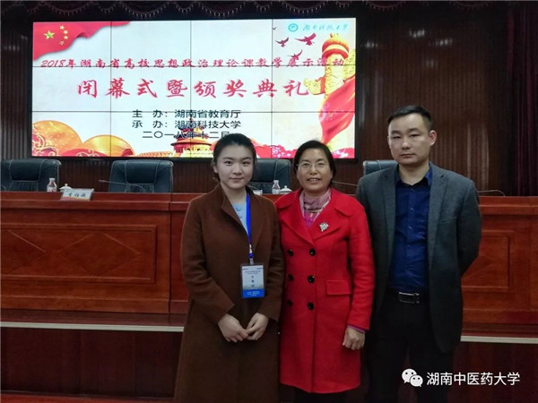 12月2日,由省委教育工委举办的2018年湖南省高校思想政治理论课现场教学展示活动决赛中,马克思主义学院李文朮老师获形势与政策课程第一名,荣获一等奖。秦伟明、王毅、龙斌老师获省三等奖。