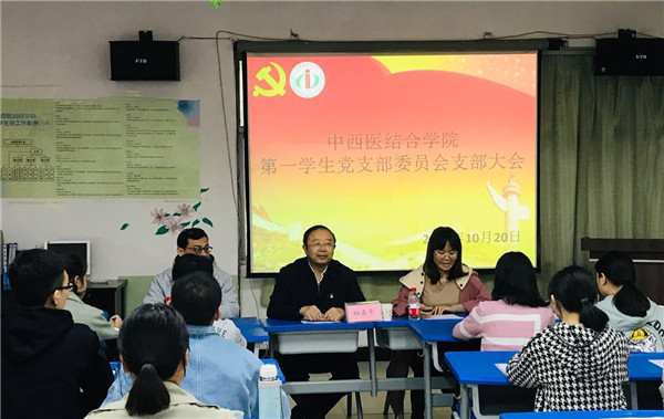 10月20日下午,副校长柏正平在中西医结合学院团队辅导室,向第一党支部全体学生党员讲了一堂主题为《新时代新青年新使命》的党课。
