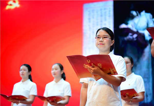 秦裕辉为广大党员、团员青年深情朗诵了毛泽东写给毛岸英、毛岸青的家书,信中毛泽东叮嘱两个孩子认真学习科学知识,奋力追求真理;踏实做人、理性面对恭维抬举。