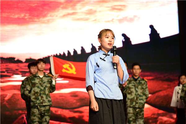 活动在校(院)领导亲笔抄写的红色家书展播中拉开序幕,秦裕辉、肖小芹、副校长葛金文,校(院)党委委员廖菁、焦珞珈等分别敬抄了毛泽东、谢觉哉、朱德、王雨亭、李立三等革命志士的红色书信。四名学生党员以慷慨激昂的语调朗诵了长征组诗,演绎出革命志士的豪迈,将现场观众带入战火纷飞的革命岁月。职工党支部、2018级学生团支部或以朗诵或以情景剧的方式充分展现了革命者对亲情的眷恋、对儿女的叮咛、对牺牲的无畏、对共产主义事业的信念。