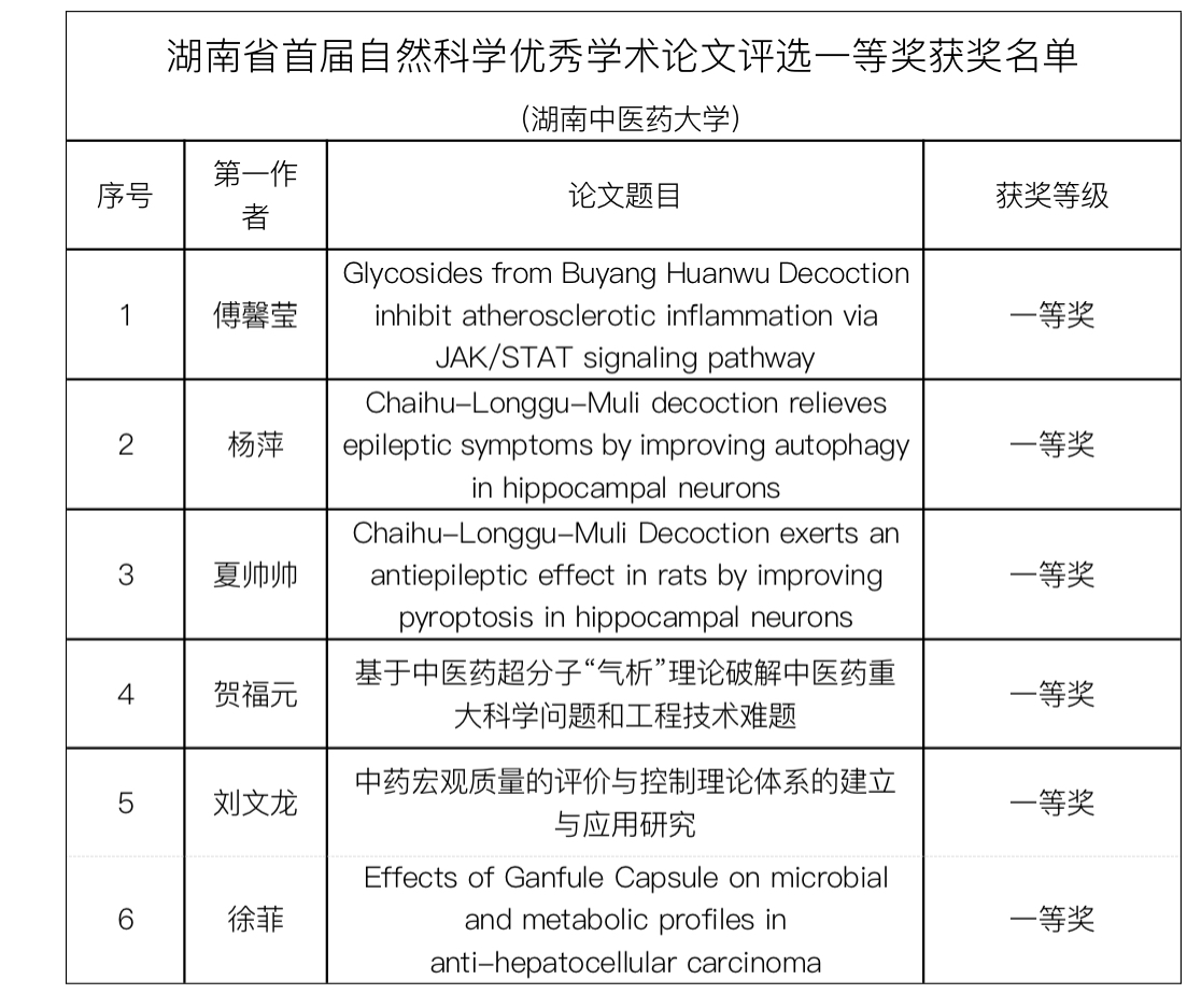 为进一步繁荣学术交流,充分发挥科技社团服务科技创新的作用,湖南省自然科学学会研究会举办了湖南省首届自然科学优秀学术论文评选,评选结果于近日揭晓,我校师生共60篇学术论文获此奖项,其中一等奖6项,二等奖19项,三等奖35项。