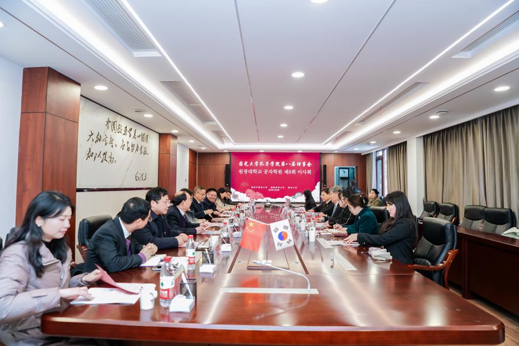 会上,姜延锡报告了圆光大学孔子学院2023年运营情况和决算报告,理事会就2024年预算及主要业务及发展规划展开了讨论,三方就中韩学术大会、圆光孔院十周年纪念活动等事项交换意见并达成一致。