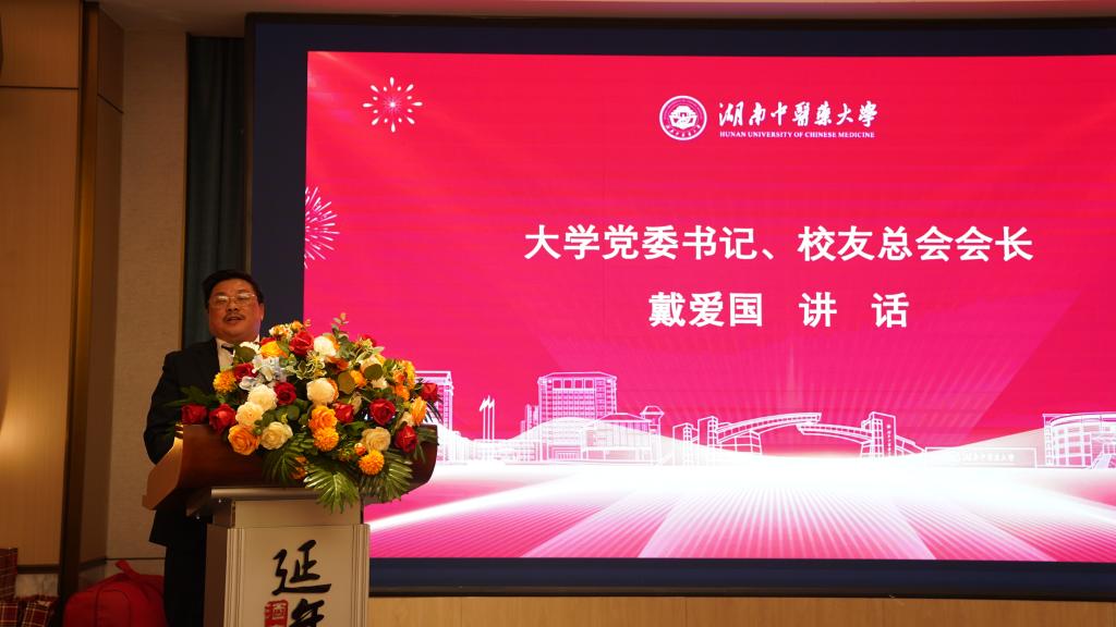 戴爱国回顾了2023年校友工作取得的成绩并对2024年工作提出了期许,他将校友与母校之间的深厚羁绊诠释为“五个yuan”:情之根“源”、爱之相“缘”、心之家“园”、人之团“圆”,共筑校友们回归母校之“愿”,希望2024年长沙校友会、企业家校友会、医院管理者校友会积极工作,汇聚校友力量,助力学校事业蓬勃发展。