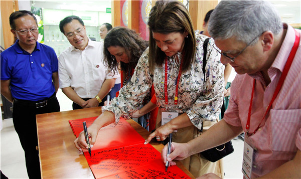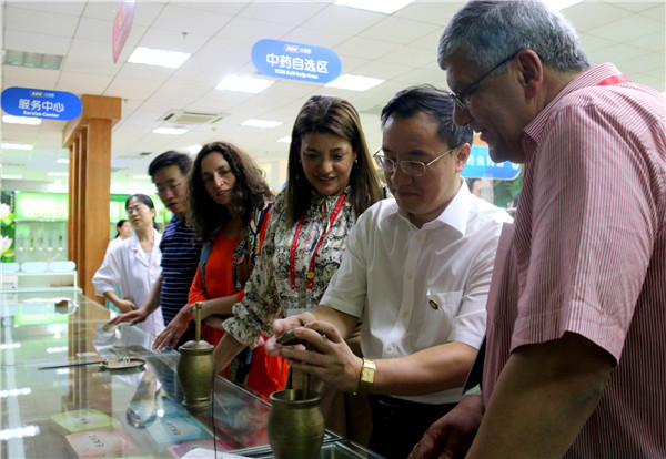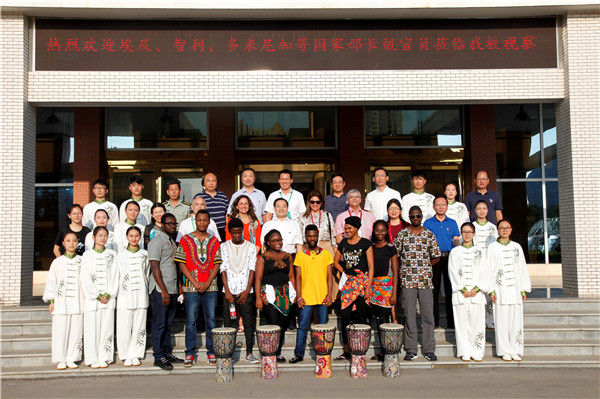座谈会前,我校传统保健队向访问团展示了中国传统的保健武术五禽戏,吐纳之间刚柔相济,让访问团感受到扑面而来的中国传统文化的魅力。我校非洲留学生们也用热情奔放的非洲鼓和传统舞蹈向来宾们表示了热烈欢迎,赢得了阵阵掌声。访问团一行还参观了中药标本馆,为各类中药切片、炮制工具等深深吸引,近距离接触、体验到中医药文化的魅力。
