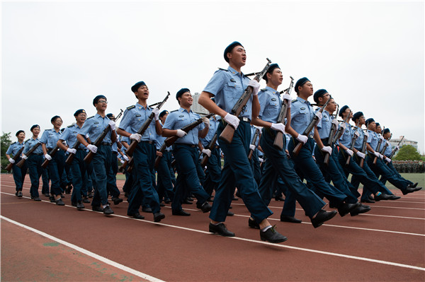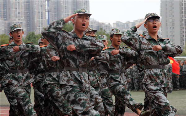 军训分列式在铿锵有力的解放军进行曲中正式开始。来自10个学院33个方阵的新生迈着坚定自信的步伐,喊着高昂振奋的口号,以严整的军容军姿依次从主席台前通过,接受领导、老师和教官的检阅,充分展现了2018级杏林学子青春向上的精神风貌,展示了为期半个月军训的丰硕成果。