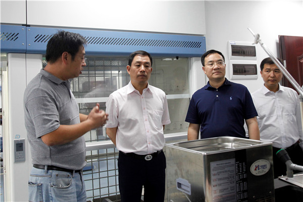 秦裕辉、谢子龙在重点实验室参观
