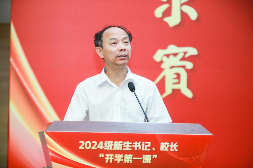 “如何充实度过大学生活?如何实现个人发展?如何成为社会有用之才?”9月20日上午,含浦校区三号教学楼学术报告厅座无虚席,校党委书记戴爱国以《追本溯源做自信自强中医药传承者 实干笃行做勇担民族复兴大任的时代新人》为题,为4793名2024级本科新生现场讲授“开学第一课”,从追本溯源、笃行远志、未来可期三个方面,勉励新生们做自信自强的中医药继承者、中医药事业高质量发展先行者、勇担民族复兴大任的时代新人,语言生动、史料丰富,现场掌声频起。
