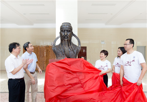 98届校友为感谢母校多年的辛勤栽培,返校之时在第三教学楼举办了“药王”孙思邈雕像的捐赠仪式。捐赠仪式由校友李慧主持,她谈到校友重聚不仅是为了校友彼此之间叙旧、联络感情,更是为了整合资源促进母校和校友们的发展与进步,为药学事业的发展贡献自己的力量。随后校友们纷纷发表感言、对学校的建议及对曾经校园生活的怀念。