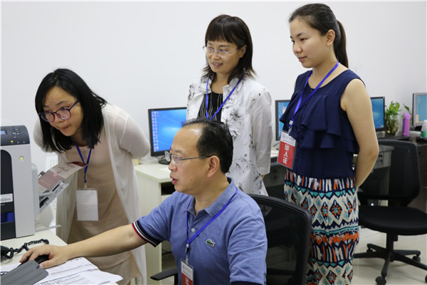 7月20日,湖南省一本批次投档,副校长何清湖、葛金文到学校2018年招生录取现场,检查招生录取工作,看望慰问一线工作人员。纪检监察室、教务处、招生就业处负责人陪同参加。各二级学院负责人、分管学生工作副书记(副院长)、学生科老师和招生专干查看了今年各学院各专业省内生源情况。