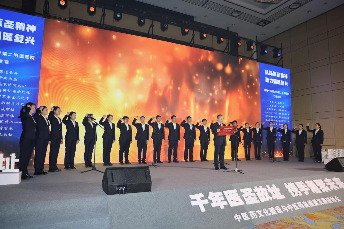 会议尾声,医护人员代表发布《“弘扬医圣精神,致力国医复兴”乙巳宣言》,以响亮的誓言传达担当中医药发展重任的坚定决心。