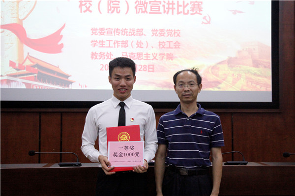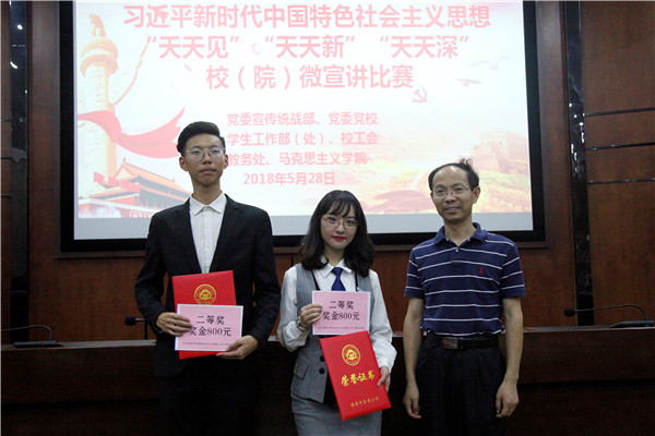 5月28日下午,习近平新时代中国特色社会主义思想“天天见”“天天新”“天天深”校(院)师生微宣讲比赛在国际教育学院学术报告厅举办,比赛由党委宣传统战部、党委党校、学生工作部、校工会、教务处、马克思主义学院联合主办,旨在推动广大党员干部师生深入学习贯彻习近平新时代中国特色社会主义思想,落实好“学懂、弄通、做实”的要求。