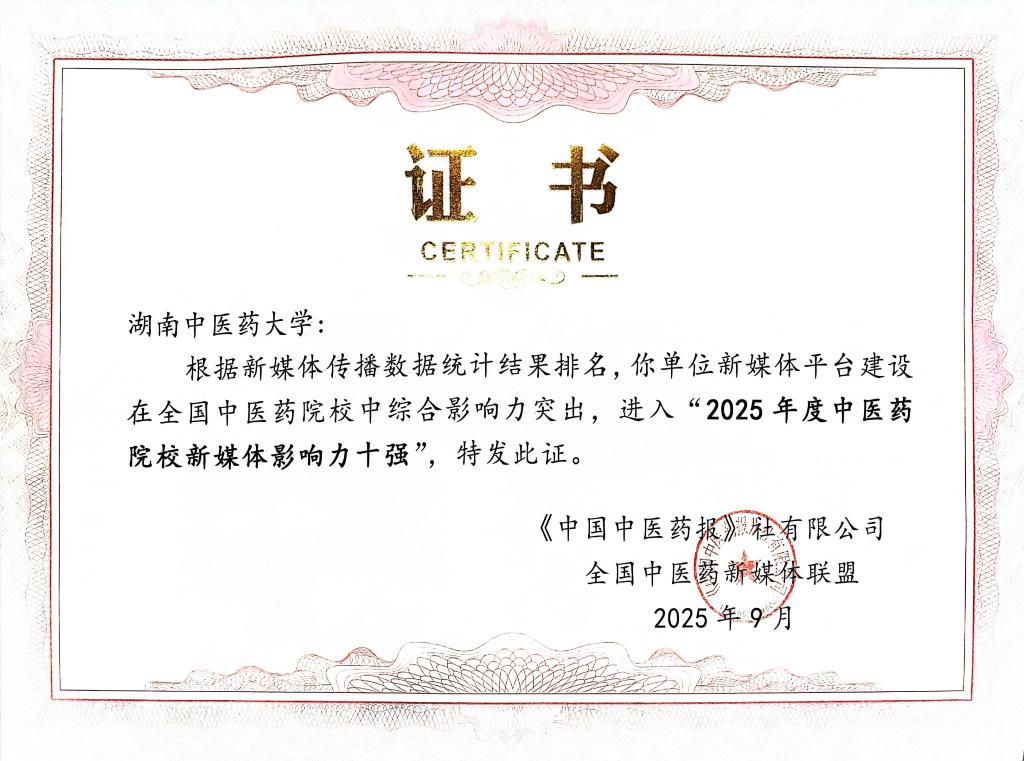 立足新起点,展望新征程。此次跻身全国中医药高校新媒体传播影响力前三强,不仅是对学校新闻传播工作的高度认可,更为我校深入探索与实践中医药文化的创新传播注入了强劲动能。我们将以此项荣誉为起点,在学校党委的正确领导下,始终秉持“以中医药为魂,以内容为王,以创新为要”的传播理念,不断优化全媒体矩阵建设,深耕湖湘中医药核心价值,提升新媒体传播效能,致力于打造更多有温度、有深度、有热度的精品内容,为学校“双一流”建设营造更强劲、更浓厚的宣传舆论氛围,让湖湘中医药文化在新时代浪潮中焕发更强生命力、传递更远影响力。