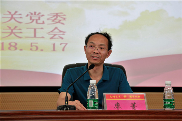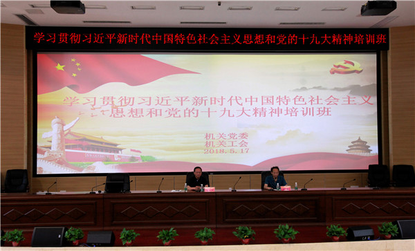 5 月 17日下午,由我校机关党委、工会举办的学习贯彻习近平新时代中国特色社会主义思想和党的十九大精神专题培训班在三号教学楼一楼学术报告厅正式开班。校(院)党委副书记肖小芹作题为《中国共产党章程(修正案)》解读的首场辅导报告,校(院)党委委员、组织人事部长廖菁主持开班仪式。机关科级干部、党员、职工参加了集中学习。