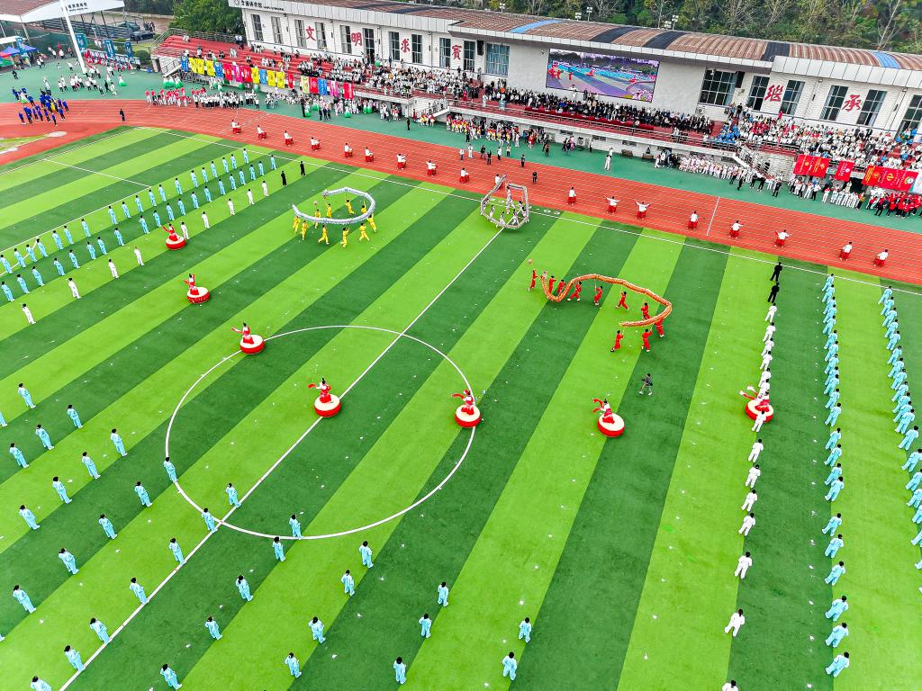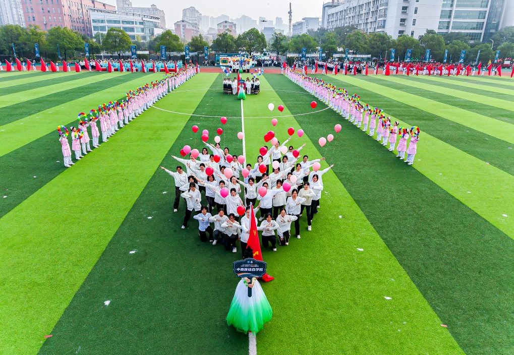 校党委书记戴爱国宣布开幕。话音方落,五彩斑斓的气球腾空而起,交织成一片“云霞”,载着健儿们高远的目标朝着云端进发。