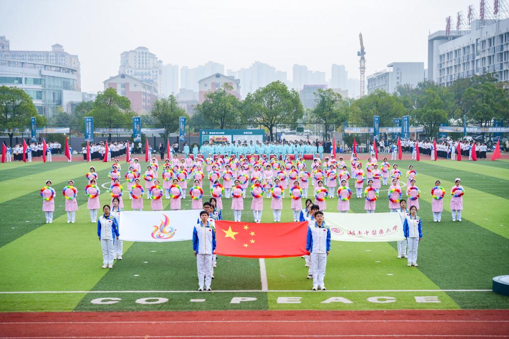 国歌激荡,国旗飞扬,信仰之荣光遇上青春之热血,时代脉搏仿佛也与此共振,奏出青春之华响。随后升校旗、会旗,全体奏唱校歌。