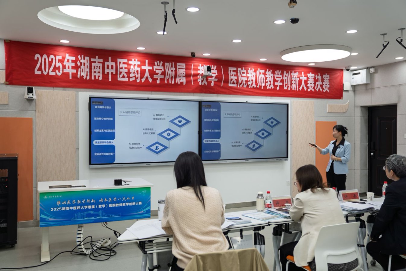 11月16日,由教师发展与评估建设处、教务处主办的以“推动医学教学创新 培养医学一流人才”为主题的2025年湖南中医药大学附属(教学)医院教师教学创新大赛决赛于含浦校区立德楼隆重举行。校长易刚强、副校长喻嵘出席竞赛总结交流大会。现场220余名师生参加观摩学习,线上1400人次共同观看了直播。