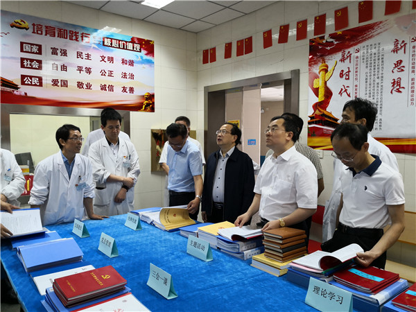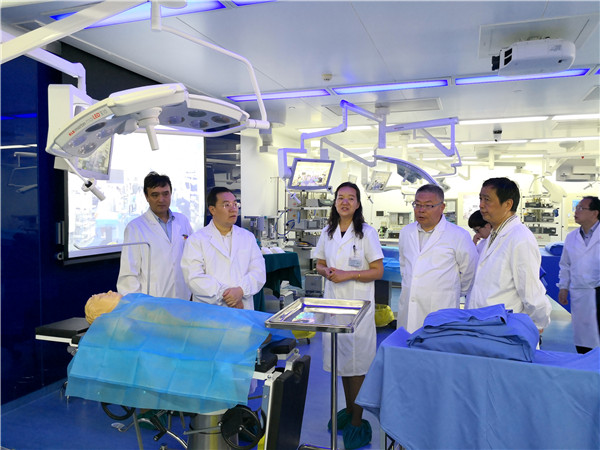 在宁夏医科大学总医院,秦裕辉一行考察了临床技能综合培训中心并亲自动手操作腹腔镜手术模拟设备,还参观了医技党总支第二党支部党员活动室,查看了党员活动有关资料,并与医院班子成员进行了座谈交流。在座谈会上,秦裕辉说,总医院规模很大,业务开展得非常好,医疗、科研及教学等各方面均取得了令人瞩目的成绩,特别是对临床技能培训非常重视,投入较大,管理也非常规范,医院党建工作落实也很到位,开展的党建项目化管理取得了较大成效,这些都让人留下了非常深刻的印象,期待今后能够与宁夏医科大学总医院开展更深入的交流与合作,也希望我校附属医院吸收总医院的先进经验与举措,进一步加大临床技能培训工作力度,优化管理流程,提升我校学生临床专业技能水平,认真落实抓好医院党建工作,坚决杜绝业务与党建两张皮现象。