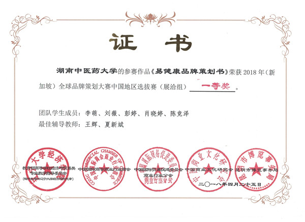 4月23日至25日,2018(新加坡)全球品牌策划大赛中国地区选拔赛在中国昆明举行,我校人文与管理学院王辉、夏新斌两位老师带领的学生团队参加了比赛。经过半年的精心备赛,历经初赛,小组赛,从全国500余支参赛队伍中脱颖而出,最终,我校参赛作品《易健康品牌策划书》荣获中国地区选拔赛(展洽组)一等奖、策划组二等奖及优秀校企合作企业奖,实现了我校大学生管理类竞赛省级及以上一等奖的零突破。这是我校师生团队第一次参与该比赛,起步晚,没有参赛经验,但在校党委、行政、教务处及人文与管理学院各级领导的大力支持及师生的共同努力下,在我校校企合作企业湖南省健缘医疗科技有限公司的鼎力相助下,首次比赛取得突破,喜获佳绩,为学校争得了荣誉。