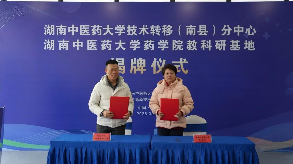 此次两大平台揭牌暨项目签约,是南县与湖南中医药大学校地合作的重要落地举措,项目落地南县高新区、精准服务南县发展,标志着双方校地合作正式迈入深度融合新阶段。我校将围绕南县的资源禀赋与产业需求,重点在大健康产品研发、中医药适宜技术推广等领域开展深度合作,推动学校的科技成果在南县落地生根、开花结果。同时,将以此平台为依托,与南县的医疗机构、企业建立更紧密的联系,共同探索柔性引才与协同创新机制,打造一个开放、共享、共赢的产学研合作生态。