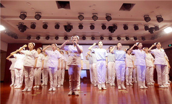 庆典大会共分五个乐章,“青春为证”、“足迹回响”、“时空连线”、“荣耀时分”、“使命传承”。乐章呈现的既有医院领导的美好祝福和殷切期望,也有白发老前辈现场传薪火的感动;既有护士与医疗药剂后勤部门夫妻档的深情告白,也有美丽天使们齐跳急救操的青春飞扬。在最具荣耀的时刻,领导、护理老前辈为“护理工作30年奉献奖”、“湖南省优质护理服务突出个人”、“十佳护理服务明星”、“最美护士站”获奖的个人与科室颁奖。最让人感动的是一晃在临床一线服务了30多年的特殊贡献奖获得者,她们的坚持与坚守,令在场的每一个人由衷地感动与钦佩。